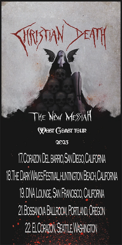Gothic Death Rock pioneers CHRISTIAN DEATH have announced a North American tour! The trek will kick off on May 5 in Akron, OH and will conclude in Brooklyn, NY on May 29! Tickets are on sale now - the full run of dates can be found below and more dates are TBA!